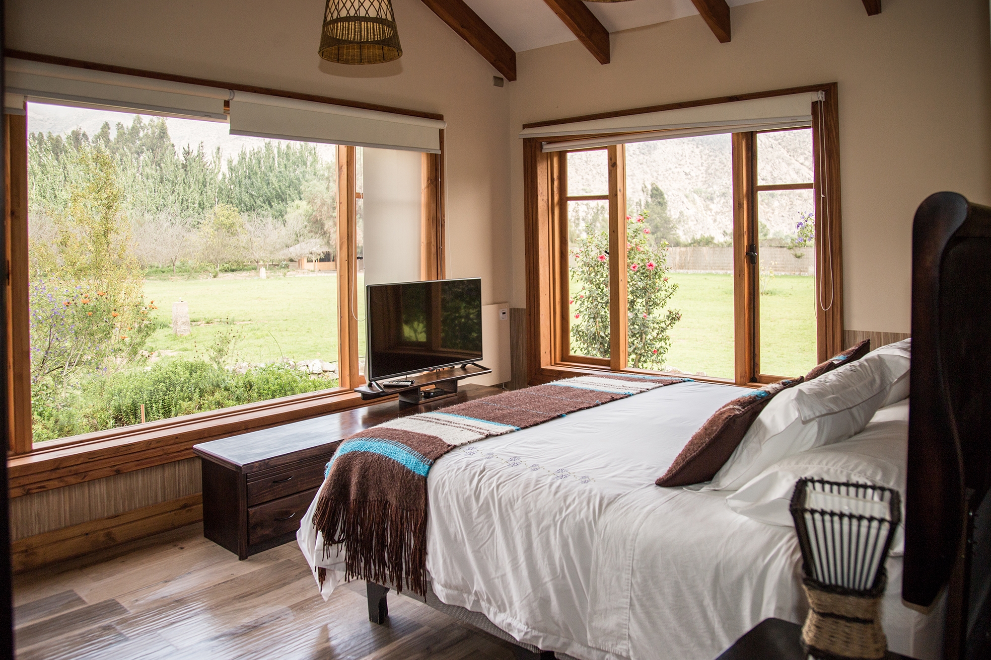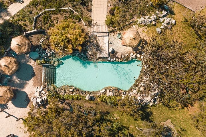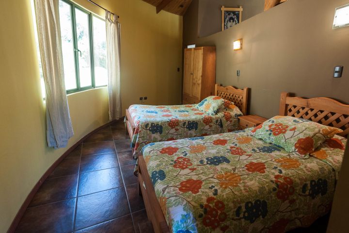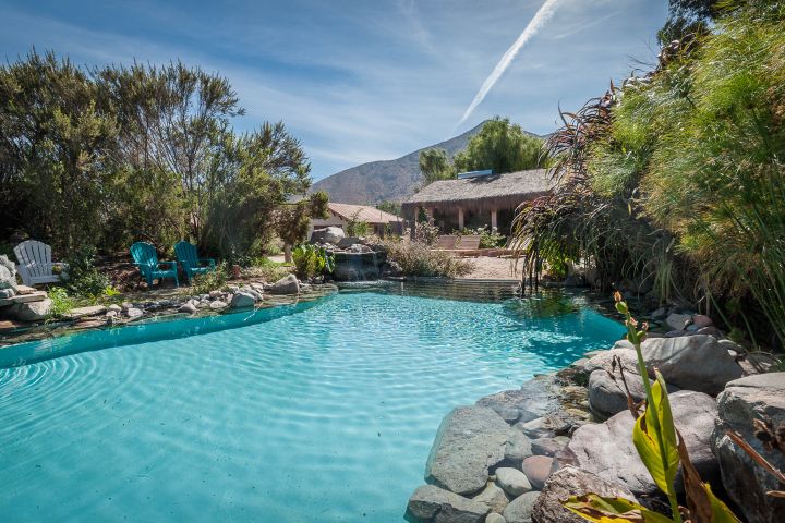 Nuestras instalaciones están emplazadas en una superficie de 60.000 m2, donde abunda una hermosa vegetación poblada de aves silvestres. En 25.000 m2 se ubican nuestras 11 cabañas, de 65, 80 y 120 m2, todas full equipadas y certificadas bajo norma chilena 2964, Categoría 4 estrellas. El sector de cabañas cuenta con dos sectores exclusivos de piscinas para adultos y niños, 11 Tinas de aguas calientes (Hot Tubs) de madera y de cuarzo, juegos para niños, sala de masajes, sauna seco y sala de Yoga. El espacio de las cabañas es ideal para descansar y disfrutar en compañía de familia y amigos.