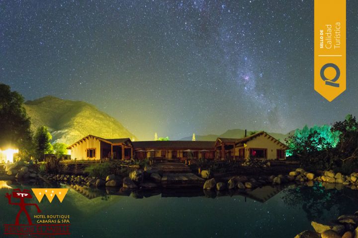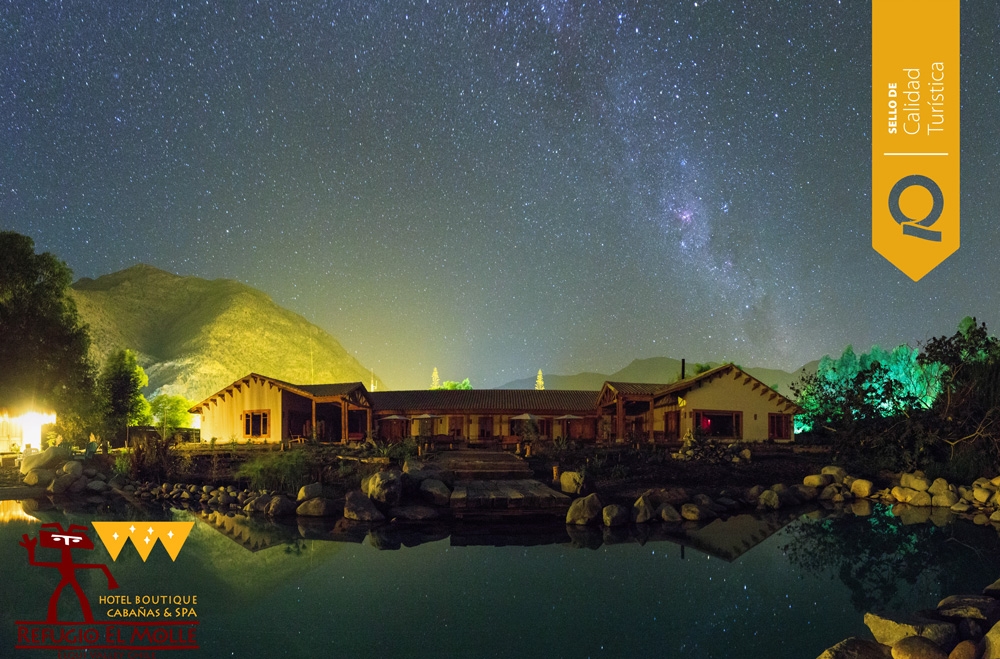 En otros 25.000 m2 está emplazado un exclusivo Hotel Boutique, para mayores de 14 años, el cual cuenta con solo 13 habitaciones, un sector de SPA (piscina temperada, baño turno, sauna seco, sala de masaje), una piscina natural, un restaurante, jardines sensoriales, huertas y una lagunita de vertientes con aves y peces. Este espacio del Refugio es ideal para desconectarse y vivenciar un relajo total. Dentro de nuestras instalaciones esta además uno de los más reconocidos restaurantes de la Región, Los Hornitos del Molle, el cual ofrece una carta con comida típica chilena, cocina de autor, vinos, cervezas y piscos de la región. Contamos con 3 salones para reuniones, un observatorio con telescopio de 11 pulgadas, y se ofrecen servicios de trekking, cabalgatas, tours y traslado de pasajeros.